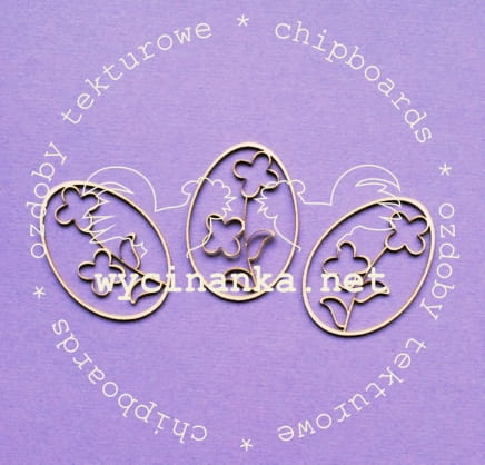Trzy pisanki wykonane z białej tekturki o grubości 1 mm.