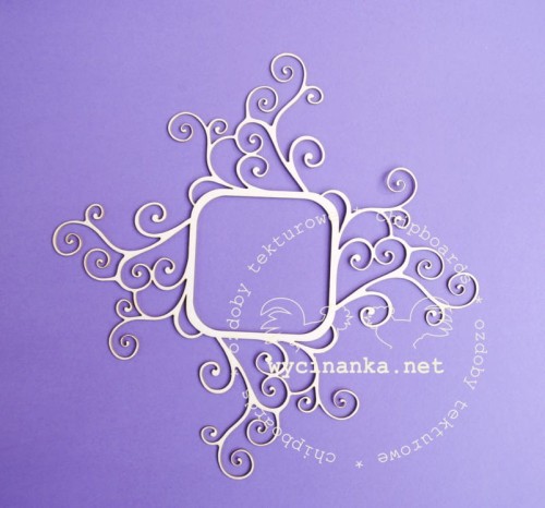 Ramka z zawijaskami z białej tekturki o grubości 1 mm.