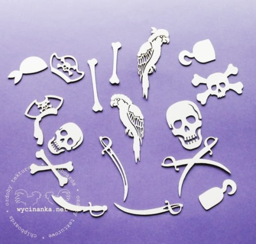 Wycinanki z serii TAJEMNICZA WYSPA SKARBÓW wykonane z białej tekturki o grubości 1 mm.