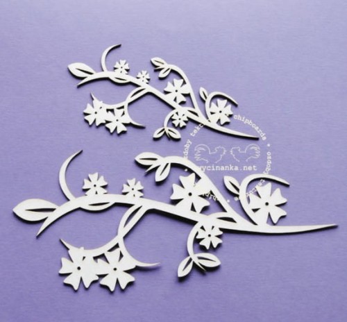 Dwa bordery (o długości ok. 10 i ok. 15 cm) wykonane z lekkiej, białej tekturki o grubości 1 mm.