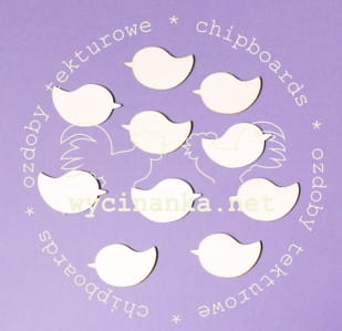 W zestawie znajduje się 10 ptaszków z milimetrowej, białej tekturki.