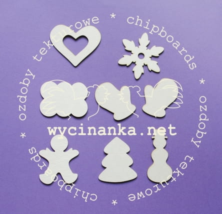 Zestaw ośmiu wycinanek z białej tekturki o grubości 1 mm.