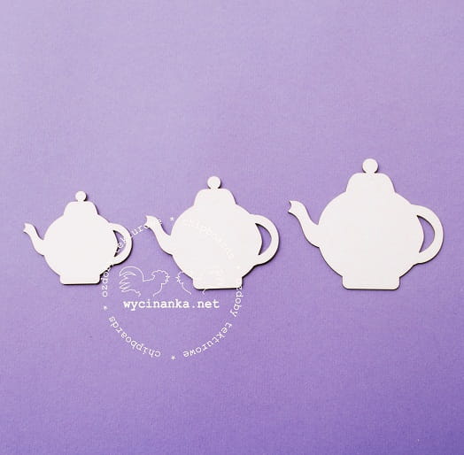 Trzy wycinanki o szerokości 50, 60 i 70 mm wykonane z białe tekturki o grubości 1 mm.