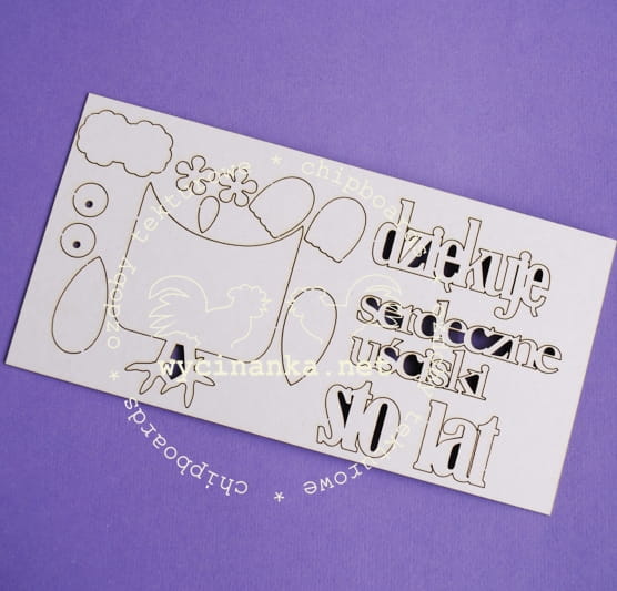 Zestaw wycinanek z milimetrowej tekturki w arkusiku o wymiarach 9,1x17,9 cm.