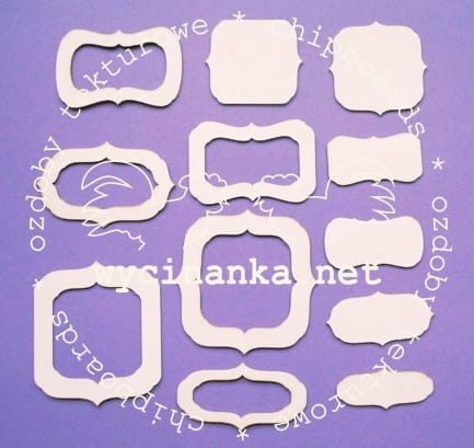 Zestaw ramek i szyldów w uniwersalnych, komponujących się z papierami "W MAŁYM DWORKU", kształtach.