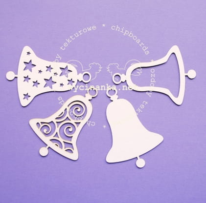 Zestaw składa się z czterech różnych dzwoneczków o wysokości 8 cm: pełnego, konturu, z gwiazdkami, z ornamentem. Wycinanki wykonane są z białej tekturki o grubości 1 mm.