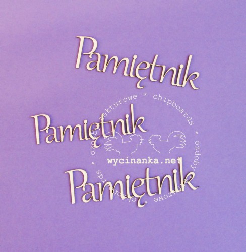 Napisy "Pamiętnik" wykonane z białej tekturki o grubości 1 mm.