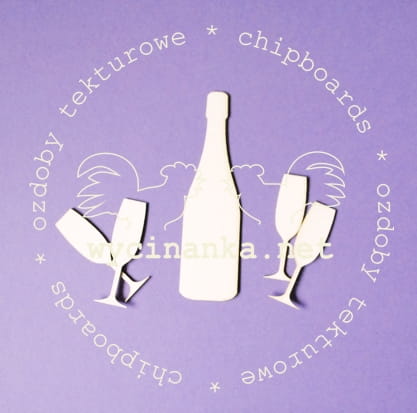 Sylwetki butelki i kieliszków do wina wykonane z białej tekturki o grubości 1mm.