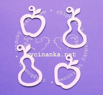 Wysokość wycinanki "jabłko" - ok. 6 cm, wysokość wycinanki "gruszka" - ok. 8 cm.