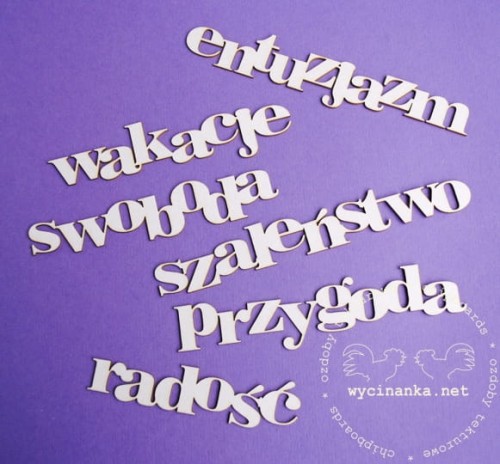 Zestaw tekturowych napisów widoczny na fotografii.