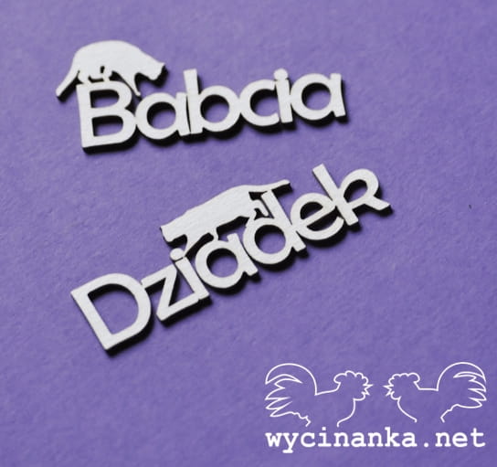 Zestaw dwóch tekturowych napisów Babcia i Dziadek.